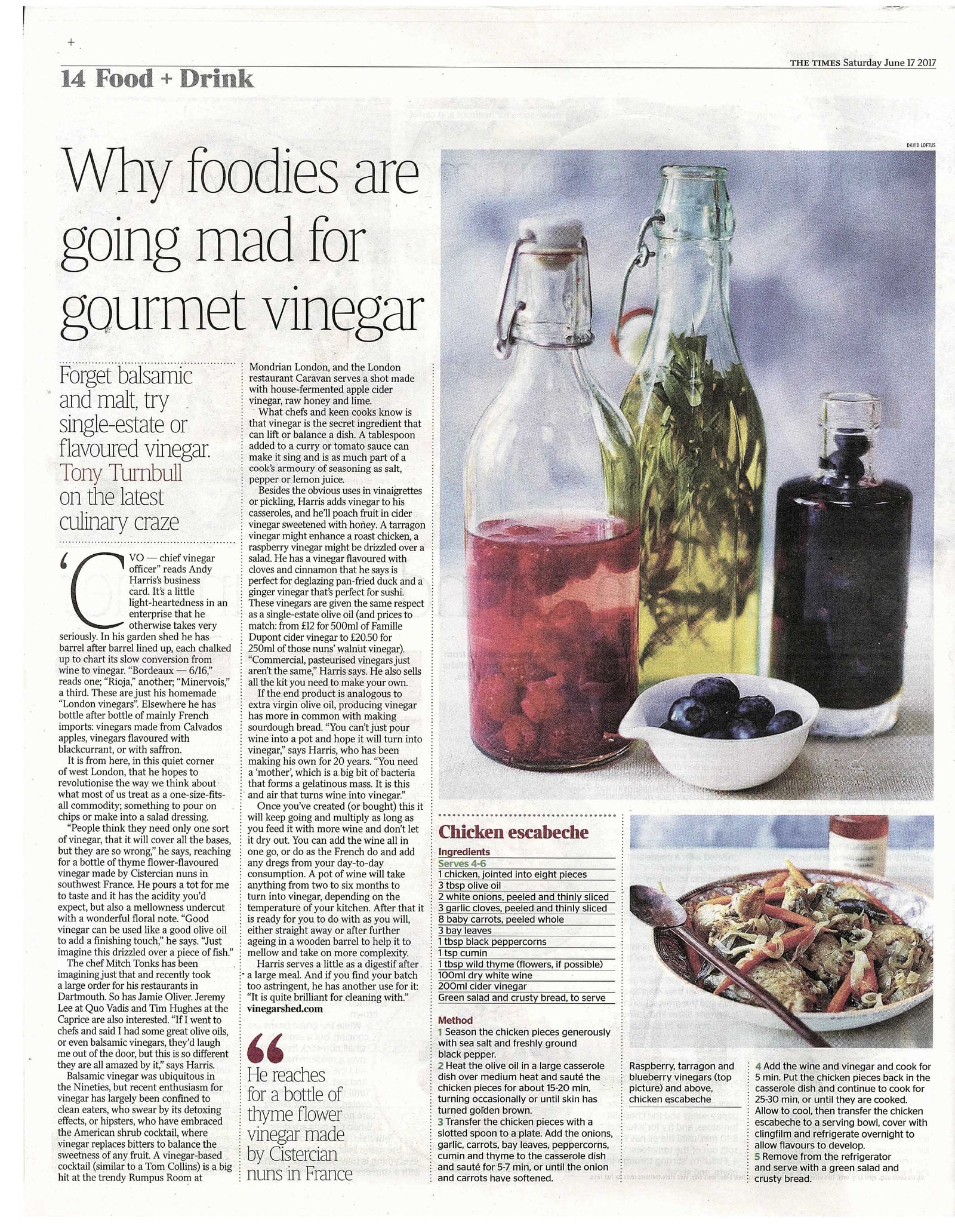 Click here to read why foodies are going mad for gourmet vinegar (The Times, 17 June 2017)