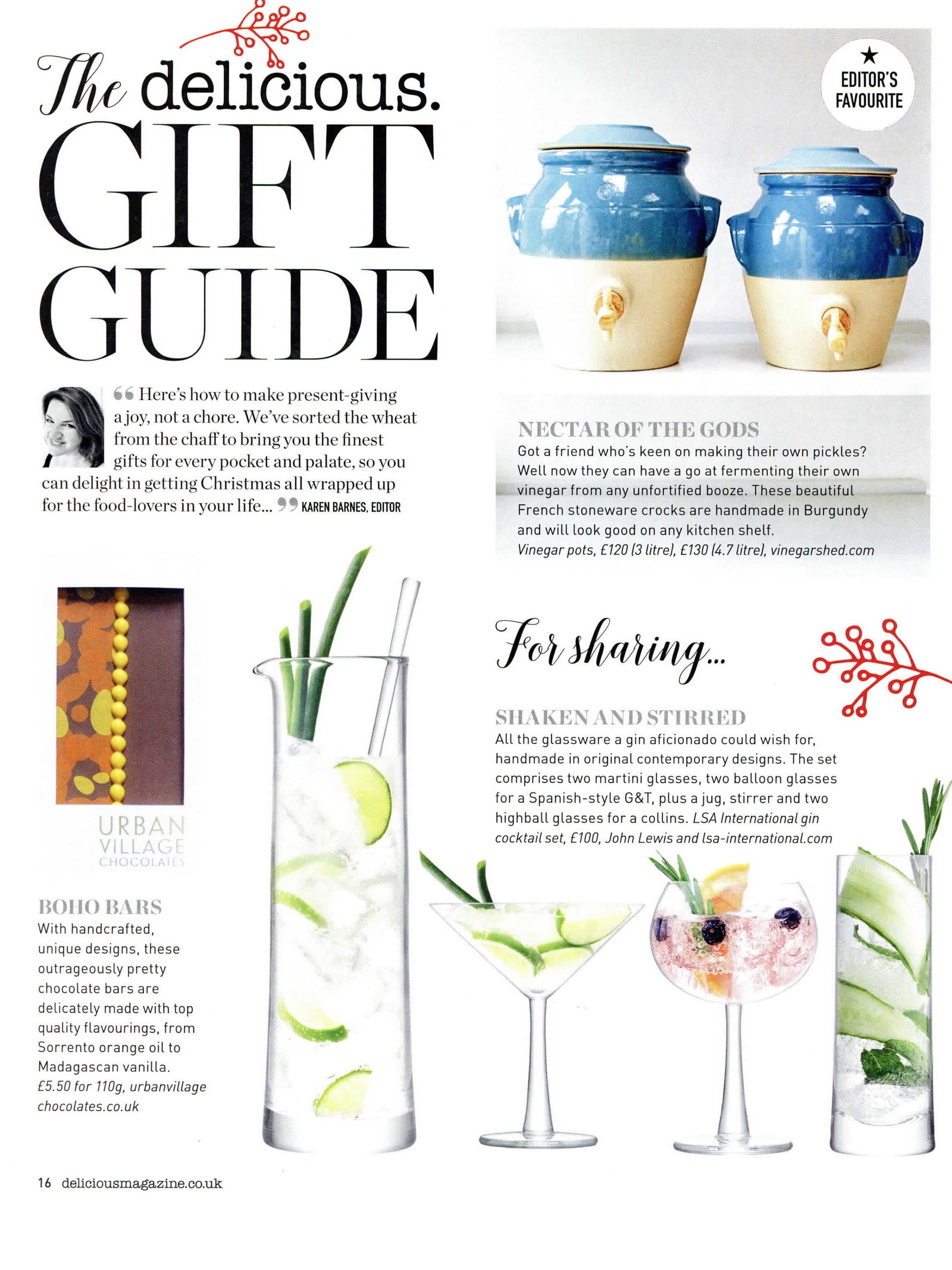 Our stoneware vinegar pots were the Editor's Favourite in Delicious magazine's Gift Guide (November 2017)