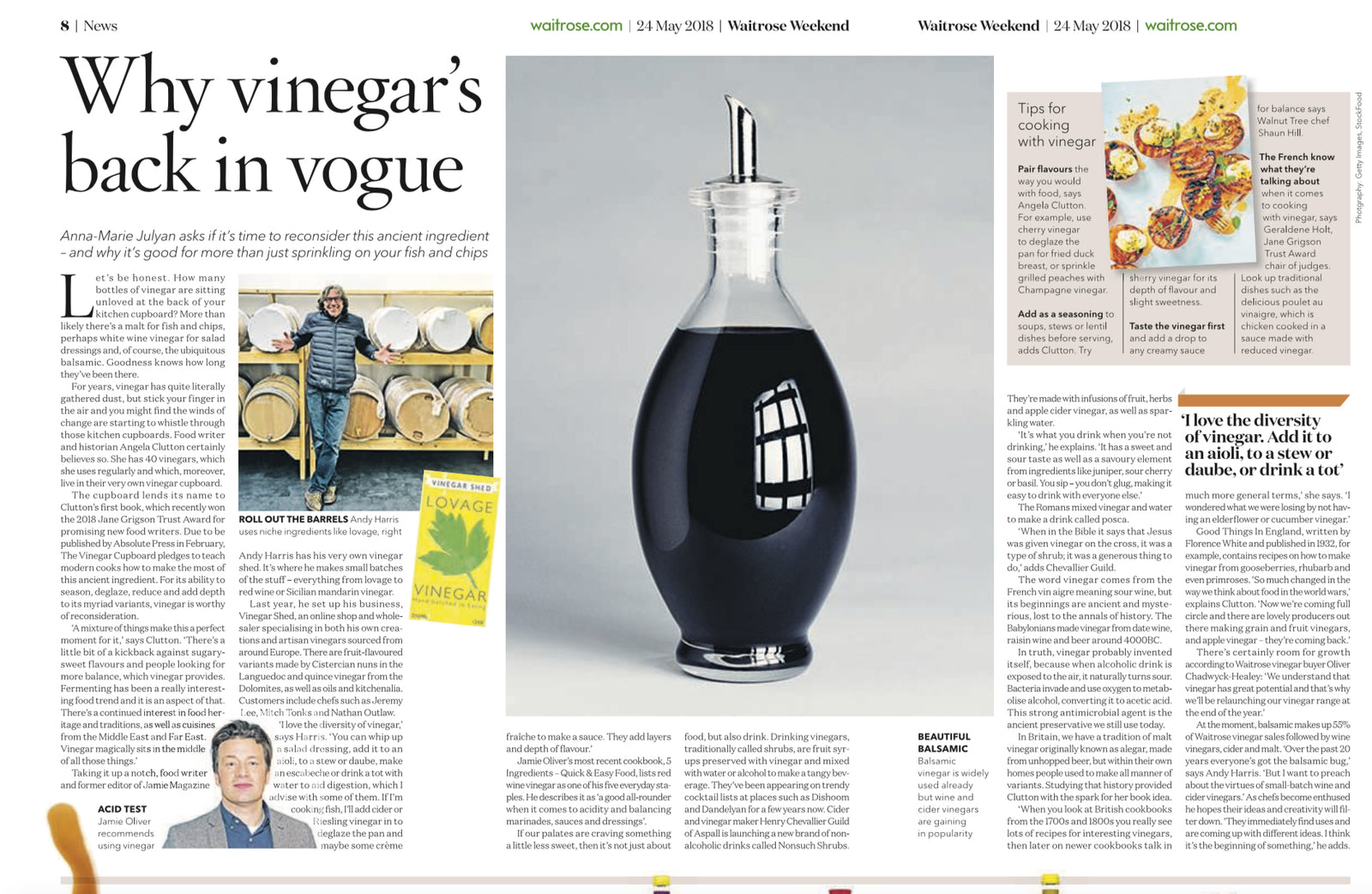 Read about why vinegar is back in vogue (Waitrose Weekend, 24 May 2018)
